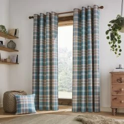 Buy ๐ฏ Catherine Lansfield Catherine Lansfield Tweed Woven Check Teal Eyelet Curtains ๐