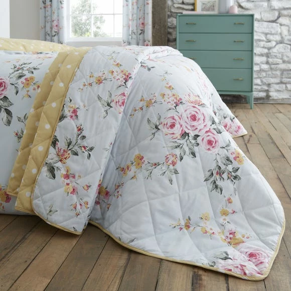 This bedspread features a contemporary palette of lovely soft duck egg tones added to the iconic hand-painted rose bouquets creates a relaxed and soothing bedroom space. Catherine Lansfield is renowned for style and quality – designed and developed in Great Britain.