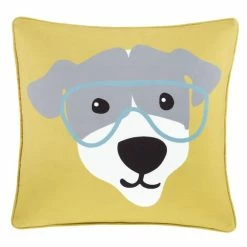 Ready to make you smile this witty cushion features cool quirky dogs sporting sartorial eyewear, with a fully reversible with one blue teal side and the other yellow ochre. Catherine Lansfield is renowned for style and quality – designed and developed in Great Britain. This cushion is ethically sourced overseas and made to strict quality and human-ecological safety standards.