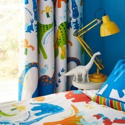 Treat your little one to this illustrated Dino print bedlinen in bright green and blue tones with a contrasting jigsaw pattern reverse. Catherine Lansfield is renowned for style and quality – designed and developed in Great Britain. Featuring adorable dinosaur illustrations on a crisp white backdrop with a fun, jigsaw print reverse, this bedding set is perfect for adding a colourful touch to any bedroom. Made from 52% polyester and 48% cotton, this duvet cover set requires minimal ironing.