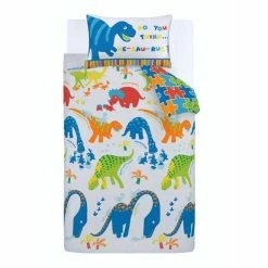 Budget โจ Catherine Lansfield Catherine Lansfield Dino-Saw Easy Care Single Duvet Cover and Pillowcase Set ๐