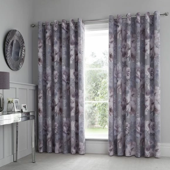 Buy ๐ Catherine Lansfield Catherine Lansfield Dramatic Floral Grey Eyelet Curtains ๐
