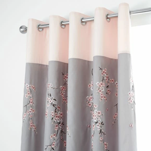 Catherine Lansfield is renowned for style and quality – designed and developed in Great Britain. These eyelet curtains boast beautiful branches of pink cherry blossom embroidered onto a grey backdrop. With a soft satin sheen, these oriental style curtains have a sophisticated elegance that harks back to eastern influences found in early 20th century design. These curtains are ethically sourced overseas and made to strict quality and human-ecological safety standards.