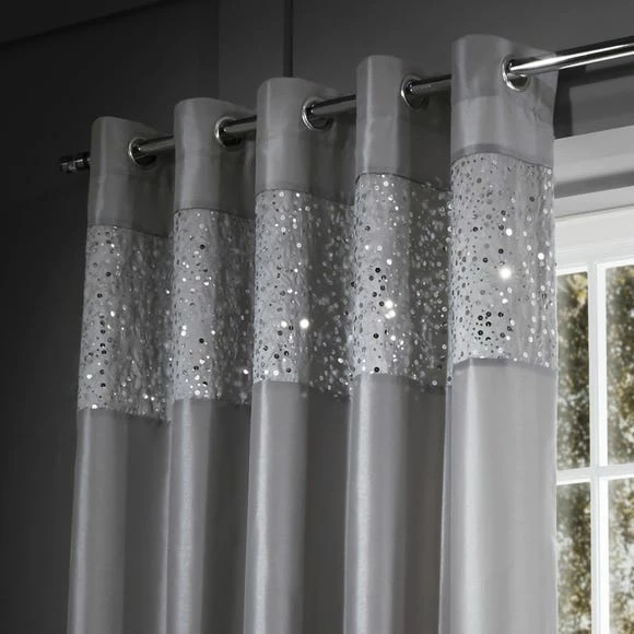 Bring some glitz and glamour to your living areas with the exquisite Glitzy home collection, designed by Catherine Lansfield to create a both modern and luxurious decor. Embellished with glittering sequins on a gleaming faux slub silk base calls for an irresistible feel and opulent look. The pair of fully lined curtains feature an eyelet header for easy installation. Team with the coordinating cushion cover for the complete Glitzy collection.