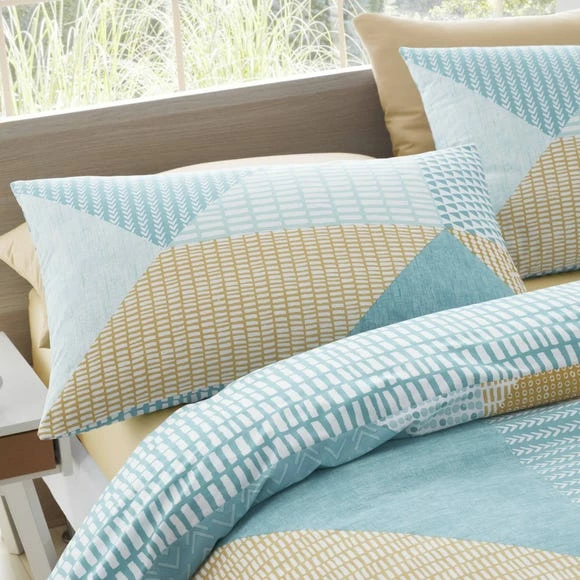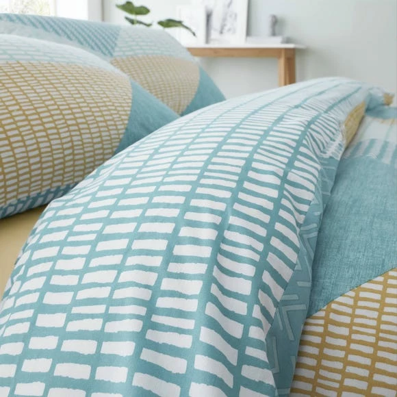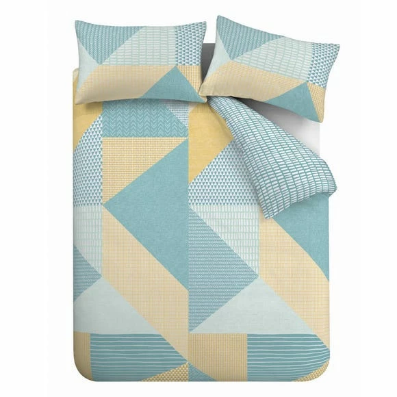Best Sale 🤩 Catherine Lansfield Catherine Lansfield Larsson Geo Ochre and Teal Duvet Cover and Pillowcase Set 🌟