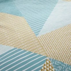 Inspired by expression and movement of the art trend mark making, the Larsson Geo duvet cover and pillowcase set is playful, bold and contemporary. Large geometric shapes fill the canvas with a mixture of ochre and teal patterns, complemented with a patterned reverse for styling versatility and interchangeability. This duvet set features a button fastening to help secure the cover around the duvet.