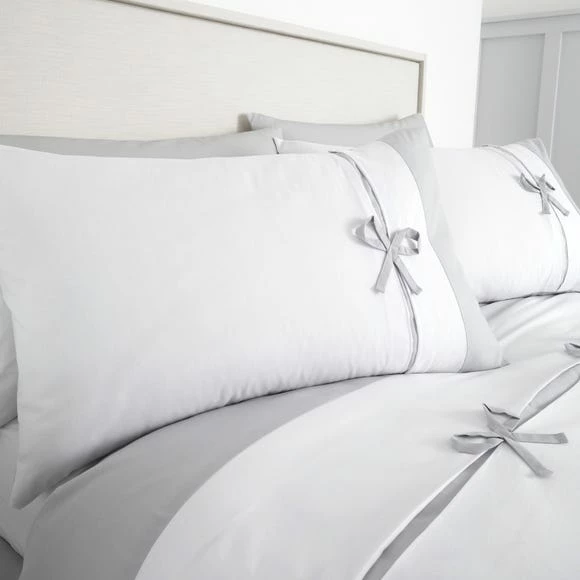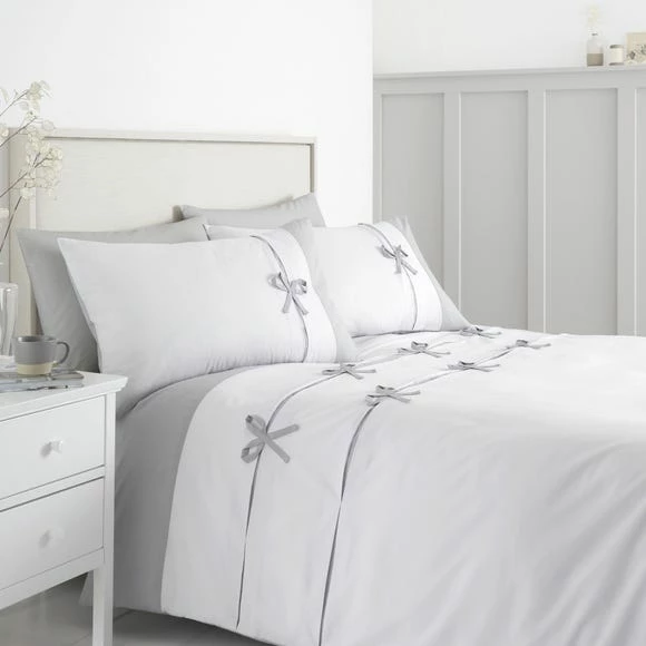 Discount 🎉 Catherine Lansfield Catherine Lansfield Milo Bow White and Grey Duvet Cover and Pillowcase Set 😀