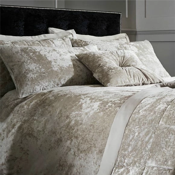 Boasting luxury this Catherine Lansfield duvet cover and pillowcase set is ideal for creating your very own bedroom heaven. Creating a glamorous style in your bedroom, this soft touch crushed velvet bedding set shimmers gracefully with the light. This bedding set is available in a range of sizes and other matching bedding and bedroom accessories are available.