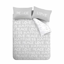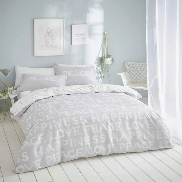 Achieve a zen retreat with this fully reversible duvet set that showcases emotive language to help enhance positivity throughout your home. The set is complete with a yoga silhouette reverse for easy yet calming interchangeable bedroom styling. This duvet set features a button fastening to help secure the cover around the duvet.