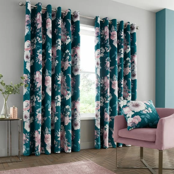 Catherine Lansfield is renowned for style and quality and is designed and developed in Great Britain. Add a hint of maximalist styling to your home with these soft-to-touch velvet curtains. This design features a bold digitally printed floral entwined patterning, finished with a pinsonic diamond technique; to help create a modern must-have look. These curtains are fully lined and finished with a ring top header that is suitable for curtain poles. Ethically sourced overseas and made to quality and human-ecological safety standards, they are made from 100% polyester.