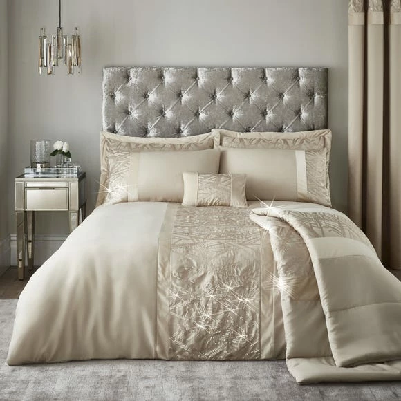 Hot Sale 💯 Catherine Lansfield Catherine Lansfield Velvet Sparkle Champagne Duvet Cover and Pillowcase Set 🌟
